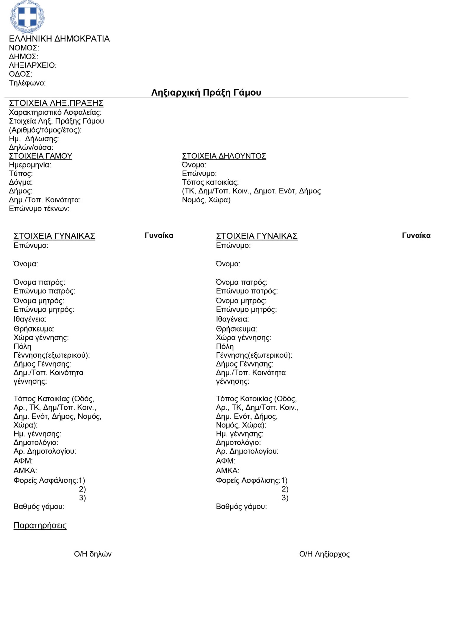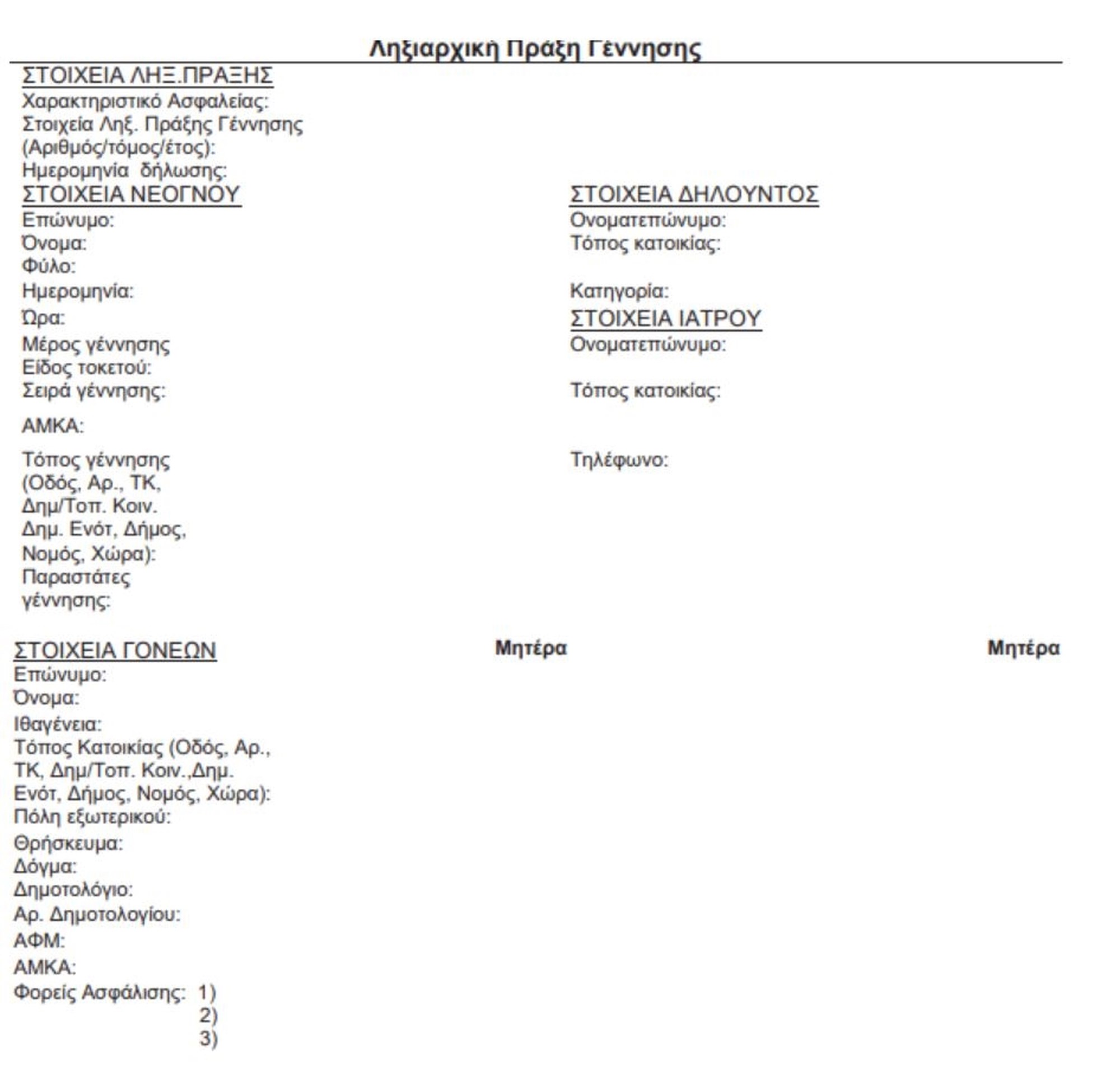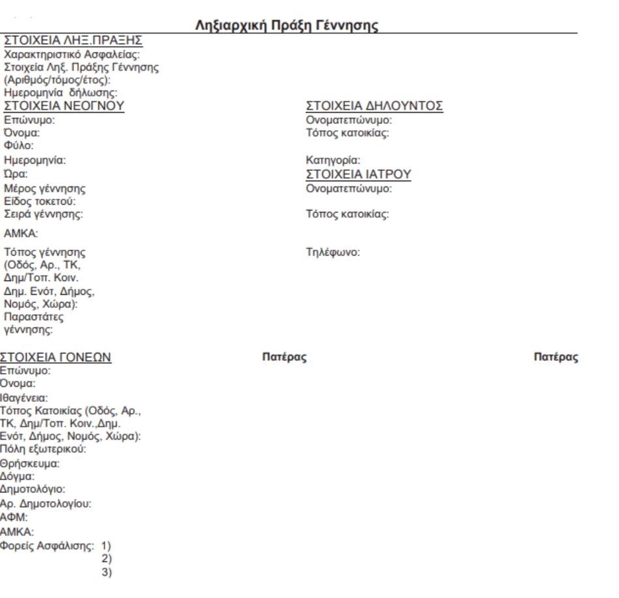 Επίσης, απαλείφεται το πεδίο "επώνυμο πατρός (μόνο μητέρα)" στα στοιχεία της ληξιαρχικής πράξης γέννησης.